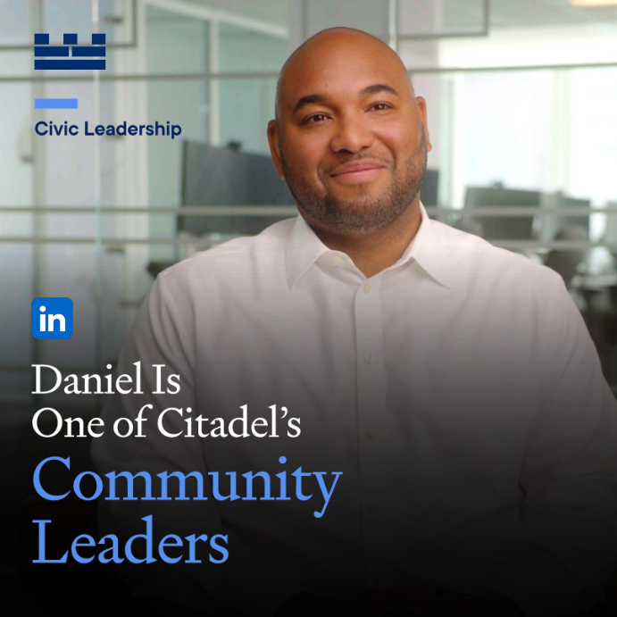 At Citadel, we encourage our team members to serve their communities as civic leaders. Daniel is part of our new Community Leaders program that encourages our U.S colleagues to serve on nonprofit boards through board matching, governance training, and financial support to these organizations.