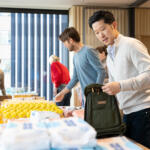 Surveyor Capital team members volunteer in a packing event for Baby2Baby.